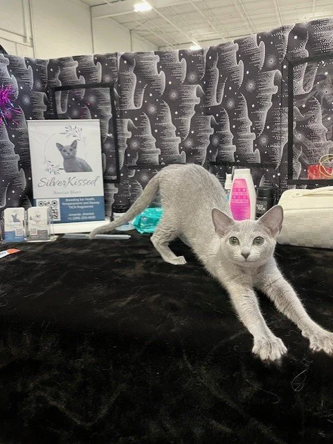 At SilverKissed Russian Blues, we are dedicated to breeding healthy, pedigreed Russian Blue cats from internationally recognized winning lines. Our cats boast exquisite silver coats that shimmer and deep green eyes that captivate the soul. Each feline is carefully selected for temperament and health to ensure they become affectionate family companions.